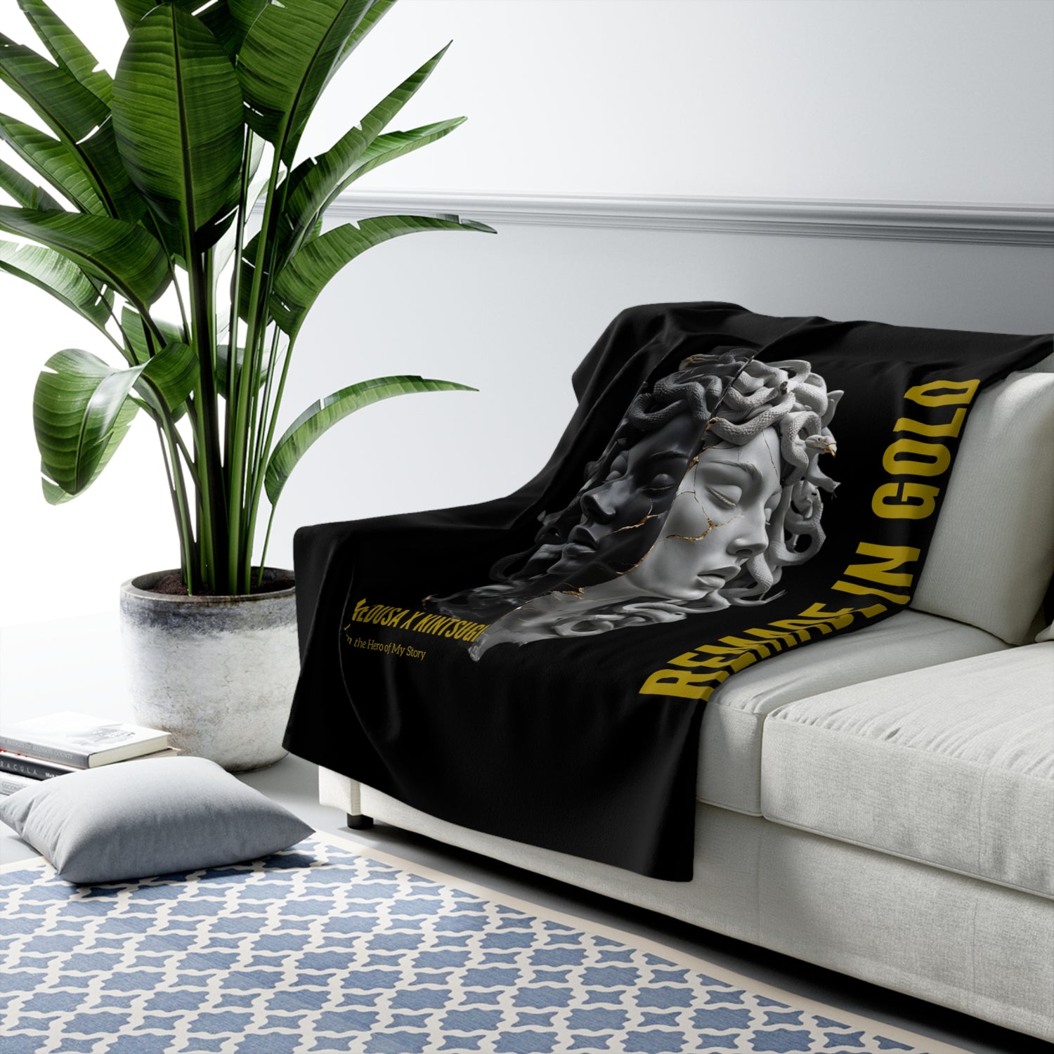 Wrap yourself in strength and softness. This Medusa x Kintsugi fleece is Remade in Gold™—a bold, healing embrace in Sherpa luxury.