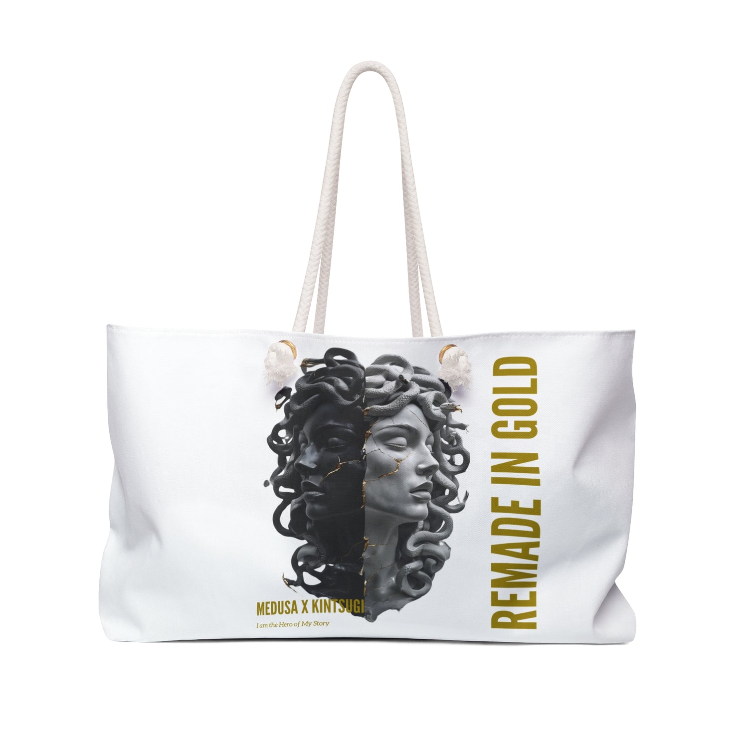 An oversized weekender bag symbolizing survival, strength, and rebirth—Remade in Gold™ for every journey you carry.